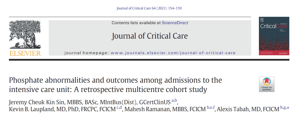 Keywords: Critical care; Electrolyte; Mortality; Multicentre; Phosphate.